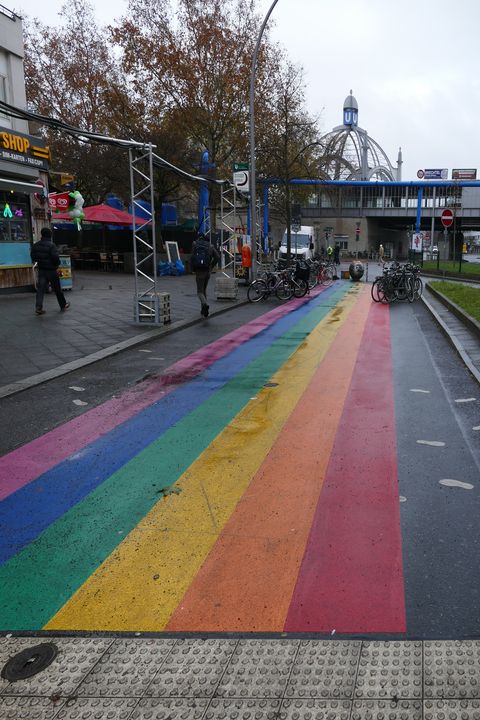 Begegnungszone Nochmal zurück zum Anfang unserer Route: Vom U-Bahnhof Nollendorfplatz durchquert man auf dem Weg zum Winterfeldtplatz Berlin erste "Begegnungszone". Die Maaßenstraße mit einer Regenbogenfläche auf einem Teil des Asphalts ist die Promenade der „Schönen und Entspannten“ im Regenbogenkiez.