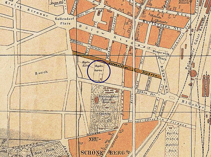 Schöneberger Vorstadt Die Residenzstadt Berlin hatte sich entlang der Potsdamer Straße nach Süden ausgedehnt und war in das Schöneberger Gebiet hineingewachsen. Zusammen mit anderen Vorstädten wie Wedding wurde es 1861 nach Berlin eingemeindet. Vom Landwehrkanal bis zum heutigen Kleistpark erstreckte sich die Schöneberger Vorstadt als Teil Berlins. Dann brauchte es nur ein Jahrzehnt, bis Straßen benannt und großstädtische Bauten errichtet wurden. Der vom Berliner Stadtrat Sommer (zugleich "einer der größten Immobilienhändler der Stadt") angelegte "sehenswerten Garten und Park" an der Großgörschenstraße und am Willmanndamm wurde gerodet, parzelliert und mit Mietshäusern bebaut. Auch eine Kleine Siedlung von Landhäusern mit Stallgebäuden an der Potsdamer Straße Höhe Winterfeldtstraße bestand nicht lange.