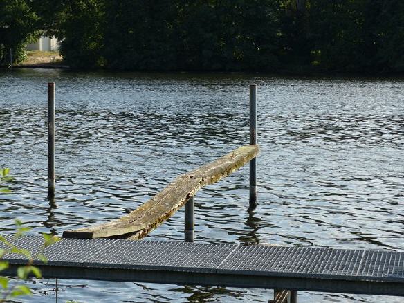 Für unser Flaniermahl haben an der Friederikestraße Ecke Almazeile das in den 1930er Jahren als Wohnhaus und Bootshaus gebaute Ausflugslokal angesteuert. Früher hieß es "Igel", das Fliesendekor in den Toilettenräumen weist noch darauf hin. Bei der Neueröffnung 2014 wollte man sich davon abheben, mit Wortwitz ist aus dem "Igel" der "Eagle" geworden, der englische Adler mit gleichem Wortklang wie der deutsche Igel. Das Haus heißt jetzt Eagle Lodge, und aus der früheren Ausflugsgaststätte wurde ein gutes Restaurant mit aufmerksamer Bedienung, in dem wir mit Wein, Quiche und Havelblick sehr zufrieden sind.