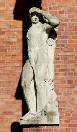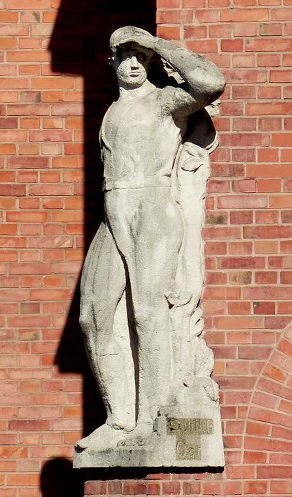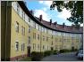 Im Jahr 1927 errichtete diese Baugenossenschaft auch an der an der Ollenhauerstraße Höhe Lindauer Allee eine blockumschließende Wohnanlage mit pathosgeladenen Erinnerungen an Geschichte und Kultur der einstigen Heimat. Die beiden Häuserecken an der Ollenhauerstraße sind gemauerte Backsteingotik, wie sie während der Ostkolonisation typisch war. Davor stehen lebensgroße Plastiken eines in die Ferne schauenden Landmannes mit der Sockelinschrift "Deutsch Ost" und eines Ritters, auf dessen Schild "Marienburg" eingraviert ist. In der Schulenburgstraße finden sich auf einem vertikalen Figurenband weitere Darstellungen erdverbundenen Arbeitens und einer Urkundenrolle, die wohl das verbriefte Recht auf die Ostgebiete ausdrücken soll.