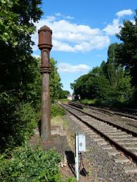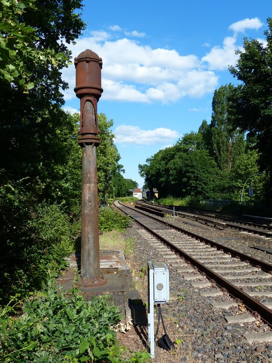 Auch ein ehemaliger Güterbahnhof liegt heute an unserem Weg. Um 1900 erhielten die Fabriken an der Flottenstraße durch eine Industriebahn Anschluss an den Güterbahnhof Reinickendorf. Ein Güterschuppen und ein Stellwerk - geschaffen von dem Bahnarchitekten Richard Brademann - sind noch erhalten, Güter werden aber hier nicht mehr umgeschlagen.
