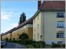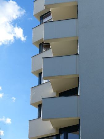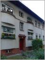 Und damit sind wir bei unserem heutigen Rundgang, der von der Lindauer Allee bis zum Nordgraben führt. Die Wohnanlage für Ostflüchtlinge ist nicht die einzige Siedlung, die wir heute sehen. Die Wohnhausgruppen zwischen Thyssenstraße und Weinbrennerweg gehören zu den späten Bauten von Erwin Gutkind. Expressive Fassaden wie beispielsweise an seinem Lichtenberger Sonnenhof oder an dem Gebäudekomplex Ollenhauerstraße / Kienhorststraße findet man hier nicht. Stattdessen einstöckige glatte Gebäudezeilen aus denen die Eingangsbereiche als Risalit hervorspringen.