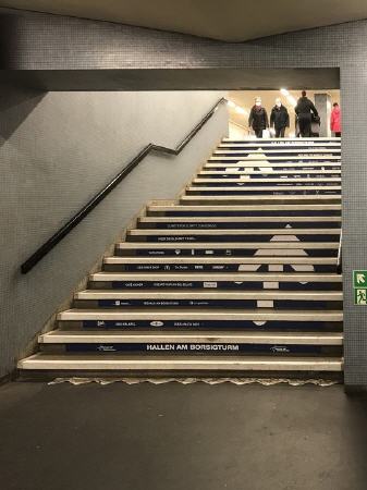 Wie eine Fata Morgana taucht das malerische Gebäude der Humboldt-Oberschule hinter den Bäumen an der Hatzfeldallee auf, bevor man die Grünanlage vor der Bahntrasse erreicht. Unter dem Grünstreifen an der Bahn verläuft der Tunnel der Stadtautobahn A 111. Den schmalen Park mit dem Kinderspielplatz haben die Schüler der Humboldt-Oberschule mit entworfen. Es ist ein Lernort im Freien, zugleich ein Spielplatz und für sportliche Betätigung eingerichtet als Basketballplatz, Trimm-Dich-Anlage, Pumptrack (einer Bahn mit Wellen und Kurven für Fahrräder, Skateboards, Inlineskates oder Tretroller).