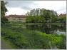 Aber die Flugzeuge sind heute nicht unser einziges Ziel, auch wenn wir sie weiterhin über uns sehen, als wir die Siedlung Paddenpuhl und die Umgebung des Letteplatzes erkunden. Der Paddenpuhl heißt heute Breitkopfbecken und ist der Mittelpunkt einer Wohnanlage aus den 1920er Jahren. Das städtebauliche Konzept und die expressionistischen Bauten wurden von dem Schöneberger Architekten Fritz Beyer (2) entworfen, der mehrfach - wie auch hier - mit der stadteigenen Heimstättengesellschaft "Primus" (3) zusammengearbeitet hat. Das städtebauliche Siedlungsmuster umschließt den See und die Parkanlagen, die der Charlottenburger Stadtgartendirektor Erwin Barth entworfen hat. Die Siedlung wurde bis 1935 in mehreren Phasen gebaut und in den 1950er Jahren ergänzt. Während alle nachfolgenden Bauten schlicht gestaltet sind, hat Beyer in der ersten Bauphase die Putzflächen seiner Häuserblocks durch mehrfach farbig abgesetzte Fenster, orientalisch anmutende gezackte Bögen und andere ungewöhnliche Details belebt. Die Nachkriegsbauten sind in ihrem Design erkennbar der Zeit der Nierentischidylle zuzuordnen.