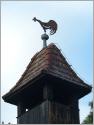 Auf der Turmspitze der Friedhofskapelle steht ein Hahn anstelle eines Kreuzes. Wahrscheinlich ist er beweglich und zeigt die Windrichtung an. Die Bedeutung geht jedoch tiefer, der Hahn erinnert daran, dass Petrus seinen Messias Jesus in der Nacht vor der Kreuzigung dreimal verleugnet hat. So steht es im Matthäus-Evangelium, Kapitel 26. Jesus sprach zu Petrus: "Wahrlich ich sage dir: In dieser Nacht, ehe der Hahn kräht, wirst du mich dreimal verleugnen".