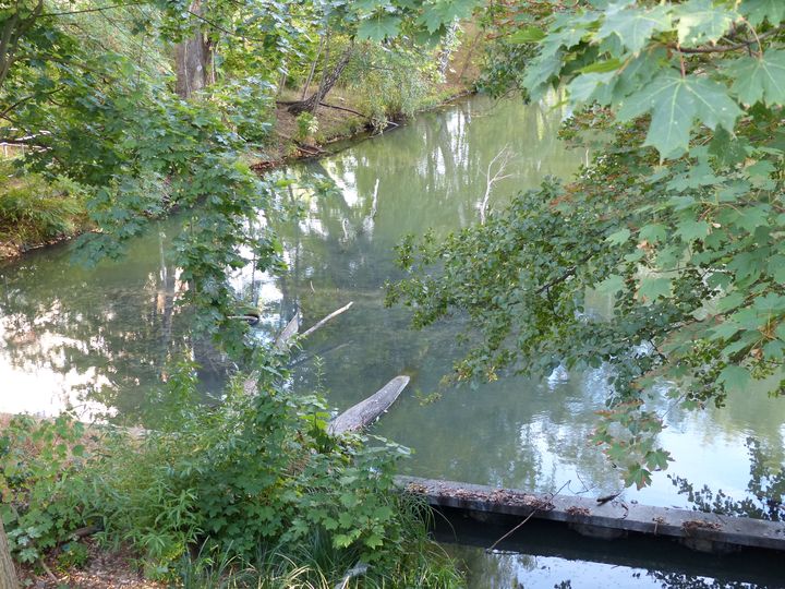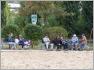 Was von den 38 Baracken, der Entlausungsanstalt und dem Schweinestall noch steht, können wir nicht sehen. Auch die Spuren der Nachkriegs-Umgestaltung in eine Gartenarbeitsschule und ein Mädchenerziehungsheim bleiben uns verborgen. Zehn Gedenkbänke aus Beton ohne Rückenlehne sind überwiegend dort drinnen aufgestellt worden. Wenn man draufsitzt, kann man die im "Fotobetonverfahren" neben der Sitzfläche aufgetragenen Informationen nicht mehr lesen, im Stehen muss man sich bücken, um sie anzusehen.
