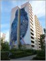 Insgesamt will die Gesobau an den Seitenwänden der Hochhäuser sieben Murals entstehen lassen, bevor sie mit den Anwohnern ins Gespräch geht. Einige Bilder sind schon fertig, doch die aufgeladene Diskussion über das Borondo-Bild lässt kaum einen Blick auf die anderen zu. Die beiden Holländer Collin van der Sluijs und Super A haben einem kleinen Starenvogel ein 42 Meter hohes Bild gewidmet. Schaut man näher drauf, dann verbirgt sich ein ganzer Kosmos unter seinem Gefieder. Auch andere Künstler haben hier Murals geschaffen, über die nicht kontrovers diskutiert wird. Die Zwillingsbrüder How and Nosm greifen mit ihrem Werk „On tiptoes“ - auf Zehenspitzen – nach den Sternen. Fintan Magee hat den „Summer of Peace“ gestaltet: Durch eine vom Krieg zerstörte Landschaft gehen zwei Menschen, suchen einen Neuanfang nach der Zerstörung.