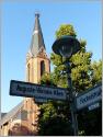 Die evangelische Segenskirche an der Auguste-Viktoria-Allee ist gut 60 Jahre älter, sie wurde mit Unterstützung des evangelischen Kirchenbauvereins errichtet. Ursprünglich sollte die Kirche von Straßen umgeben auf einem Platz stehen, stattdessen ist eine bescheidene Grünfläche entstanden. Kaiserin Auguste-Viktoria hatte diesen Bau wie viele andere Kirchenbauten gefördert und war bei der Einweihung natürlich anwesend. Ihr zu Ehren wurde die Straße benannt. Das Wirken der "Kirchen-Juste", wie die Berliner sie liebevoll nannten, ist uns schon oft in Berlin begegnet (6).