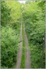 Nicht weit entfernt von dem Ritualort durchquert in einem Einschnitt die Trasse der ehemaligen Industriebahn Tegel–Friedrichsfelde den Park. Mehrfach sind wir in Pankow, Weißensee, Lichtenberg, Marzahn auf die Spuren dieser Bahnstrecke gestoßen, die für die Entwicklung von Industriegebieten und die Versorgung des Magerviehhofs in Lichtenberg bedeutsam war. Heute findet man nur noch Schienenreste oder - wie im Steinbergpark - einen Fuß- und Wanderweg auf der ehemaligen Bahnstrecke.
