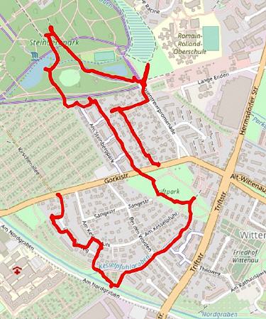 Am östlichen Ende der Gorkistraße - bevor sie in die Straße Alt-Wittenau übergeht - liegen sich der Triftpark und der Steinbergpark gegenüber. Der Triftpark wurde auf einer früheren Viehweide (Trift) errichtet. Es ist ein schöner Park mit alten Bäumen, aber sonst ohne besondere Eigenschaften, im Internet wird er nur "eine weitere Parkanlage" genannt. Dagegen ist der Steinbergpark zwischen Gorkistraße und Waidmannsluster Damm ein früheres Waldgebiet, das in den 1920er Jahren durch Arbeitsbeschaffungsmaßnahmen planmäßig zu einem Park umgestaltet wurde. Das war zur Zeit der Großen Depression, der Weltwirtschaftskrise. So wird verständlich, warum die Berliner einen Weg im Park "Suppenschlagweg" nannten: Die Arbeiter, die ihn anlegten, bekamen einen Schlag Suppe pro Tag.