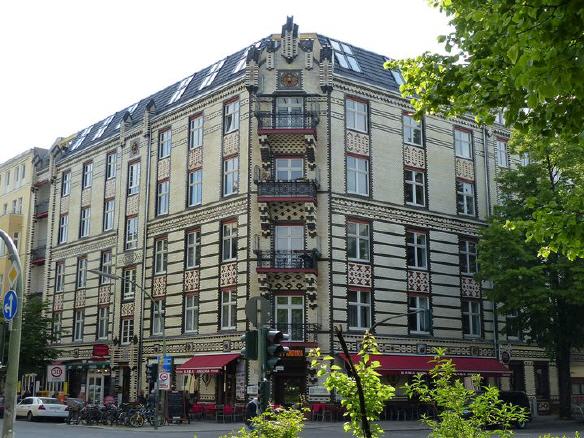 Der Denkmalführer "Dehio", der auf Dünndruckpapier die von Experten zusammengetragenen und komprimierten Denkmalfakten versammelt, sieht einen anderen Zusammenhang: "Vermutlich" sind für die Glasurklinkerfassaden "Terrakotten, Arabesken, Köpfchen, Allegorien aus dem kurz zuvor abgerissenen Berliner Traditions-Café Helms" verwendet worden.