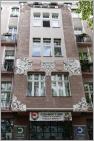 Das Eckhaus an der Goltzstraße/Hohenstaufenstraße hebt sich von den umgebenden Bauten durch eine ungewöhnliche Fassade ab. Auf die Oberfläche aus weißen Ziegelsteinen zeichnen glasierte Klinker ein Muster von Bändern und Ornamenten. Die Fensterachsen und Gesimsbänder werden von dunklen Umrandungen eingefasst. Über dem Erdgeschoss sind Medaillons mit Köpfen eingebettet in ein durchgehendes Band kleinerer Schmuckelemente.