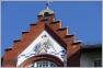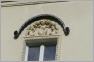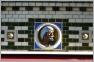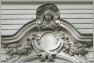 Den Giebel des "Kachelhauses" krönt ein Medaillion mit einem Früchtekranz auf quadratischem Grundriss. Innerhalb des Kranzes befindet sich ein Helm mit dem Buchstaben "S". Im Fassadenentwurf des Cafés Helms, der 1884 im "Centralblatt der Bauverwaltung" veröffentlicht worden ist, stimmt der Giebelschmuck bis auf eine Abweichung mit der in Schöneberg vorgefundenen Darstellung überein: Das Innenfeld ist jetzt gegenüber dem Entwurf deutlicher als Helm ausgeführt worden, dem Sinnbild des Cafébetreibers Helms.