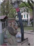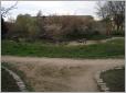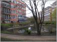 Was lockt uns in diese Straße, die seit dem Ausbau der Stadtautobahn zwar nicht mehr vom Durchgangsverkehr, aber zusammen mit der Verlängerung Silbermannstraße von einer Verödung gekennzeichnet ist, die auch trotz einiger historischer Fassaden der alten Bürgerhäuser nicht zu übersehen ist ? Und doch, selbst an der Silbersteinstraße gibt es hinter dem Spielplatz "Jim Knopf" , der mit Holzeisenbahn und Kletternetz den Kindern einiges bietet und voller Leben ist, eine kleine stille Neubauidylle um einen kleinen Tümpel herum. Wir kommen wegen hoher Zäune von dieser Seite nicht heran und folgen unserem ursprünglichen Vorhaben, die "Bärensiedlung" entlang der Oberlandstraße zu besuchen.
