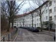 Die Lindenhofsiedlung begleitet die Arnulfstraße auf beiden Seiten. Der größere Teil gruppiert sich um den Lindenhofweiher, der bei unserem heutigen Rundgang eine Eisfläche ist. Die als Gartenstadt für genossenschaftliches Wohnen nach Ende des Ersten Weltkriegs angelegte Siedlung ist gerade vor drei Monaten für ihre "biologische Vielfalt" von der Bundesumweltministerin ausgezeichnet worden. Die für Gartenstädte typischen Hausgärten für die Versorgung der Bewohner und die gemeinschaftlichen Grünflächen wurden um Obstbäume ergänzt, Baumpatenschaften eingerichtet, eine Bienenzucht angelegt, der Energiebedarf drastisch gesenkt, Nisthilfen für Mauersegler geschaffen.