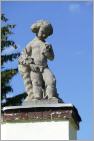 Mehrere Pfeilerputten stehen in der Siedlung verteilt. Sie sind an historische Vorbilder angelehnt, erfahren aber durch beigefügte Attribute wie Weintrauben oder Fische eine "expressionistisch-modernen Formumdeutung". Der zentrale Adolf-Scheidt-Platz ist durch einen Storchenbrunnen hervorgehoben. Auf der Spitze eines Pfeilers ist ein Storchenpaar aus Bronze weithin sichtbar, brütend im Nest sitzend und stehend wachsam die Umgebung beobachtend. Den Sockel des Pfeilers umgeben vier Kinderfigurengruppen aus Kalkstein.