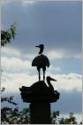 Eine bronzene Plastik mit mehreren fliegenden Störchen steht am Rande der Gontermannstraße, die zweite Storchenplastik in der Siedlung. Der Schwarm der Vögel mit ausgebreiteten Schwingen erinnert an das Brieftaubendenkmal von Georg Roch von 1927 in Spandau.