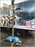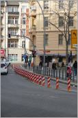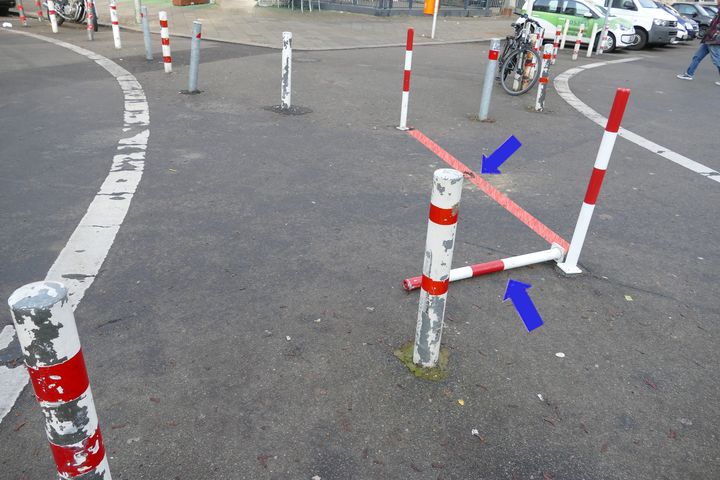 Wo die Kulmer Straße auf die Großgörschenstraße trifft, hat die Verkehrslenkung 30 rot-weiße Absperrpfosten in zwei Reihen in den Asphalt eingepflanzt, um die Autofahrer am Einbiegen zu hindern. Merke: Nicht die Menge macht’s, sondern der Grips. Es musste nur EIN Absperrpfosten umgefahren werden, dann war die Durchfahrt frei. Der Pfosten liegt jetzt lose daneben, hier war kein Dieb am Werke, sondern ein unwilliger Autofahrer mit einer Handreichung für viele seiner "Leidensgenossen", denen der Weg abgeschnitten wurde.