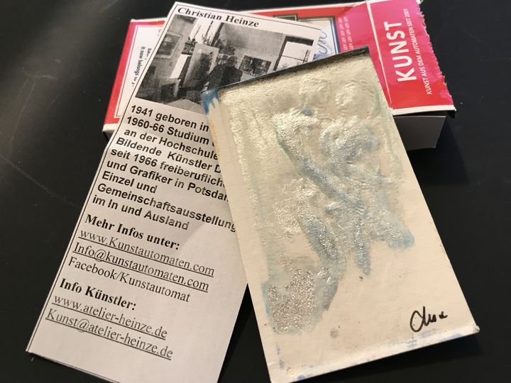 Der Crellemarkt an der nördlichen Crellestraße ist außerhalb der Marktzeiten eine Schmuddelecke. Weiter nach Süden wird die Crellestraße schnell zum Szenekiez. Hier ziehe ich aus einem "Kunstautomaten" eine Schachtel mit der Aufschrift "Diese Kunst kann verwirren, erhellen, aufregen und süchtig machen". Ein hüllenloses Paar hat der Künstler für mich gestaltet und eingepackt. Ich fühle mich erbaut und versuche zu ergründen, was die beiden wohl vollführen.