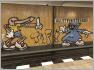 Ein unscheinbares Schulgebäude in der Machonstraße birgt einen künstlerischen Schatz, der noch nicht gehoben worden ist. Die bildliche Darstellung, die man über dem Eingang sieht, ist keine Wandbemalung, sondern ein Sgraffito. Das sind großformatige und mit wenigen Linien und Flächen in den Putz gekratzte Bilder, so wie man sie wieder auf Fassaden der 1950er und 1960er Jahre finden konnte.
