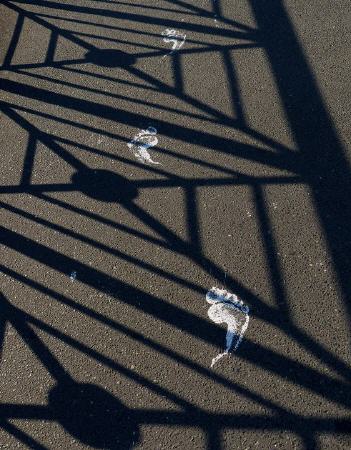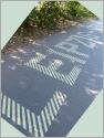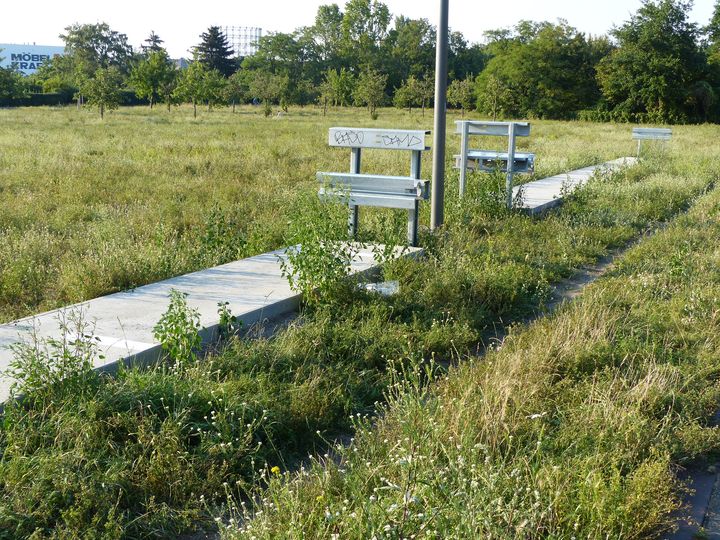 Doch nun zu dem Autobahn-Denkmal. Die Plastik "Betonspur 1 Meter" ("Concrete Evidence: 1m") ist vor drei Monaten im Heinz-Baluschek-Park eingeweiht worden. Was da im Gras liegt, soll ein Autobahn-Teilstück sein. Während eine Autobahn aber bestimmungsgemäß in die Ferne zeigt, blickt dieses Denkmal quer dazu in die Breite, von Leitplanke zu Leitplanke, denn diese Autobahn ist nur einen Meter lang, aber 36 Meter breit.