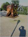 Freimütig gesteht der Künstler der "Berliner Woche" im Interview, dass der Autobahnbau ihn immer fasziniert habe. Ein Professor gab ihm die Anregung, doch mal selbst eine Autobahn zu bauen. Mit sozialkritischem Sinn aufgeladen, ergänzt um Kategorien wie "industriell" oder "historisch", wird dann ein Kunstprojekt daraus. "Mit seiner räumlichen Intervention bringt der Künstler die Dimensionen der Autobahn auf das menschliche Maß", lese ich in dem Begleittext des Bezirksamts. Dabei ist das Kunstwerk so unauffällig am Wegesrand, dass mancher Blogger schon warnt, man solle es nicht übersehen. Dass das Gigantische der Autobahn die menschlichen Maße weit übersteigt, dass der Mensch hier wie in "Metropolis" einer übermächtigen Maschine ausgeliefert ist, kann man besser ein paar Kilometer entfernt auf der Stadtautobahn sinnlich erfahren, wo sich Schlangen von Autos mehrspurig durch die Stadt quälen und eine Schneise in die innerstädtische Bebauung schlagen.