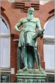Was hat es mit dem gleichzeitigen Gedenken der Schule an den Reformator Martin Luther und an Reichskanzler Otto von Bismarck auf sich? Im Vorgarten der Schule an der Handjerystraße steht eine bejahrte Stele, auf der - Rücken an Rücken - Reformator und Kanzler Kernsätze aufsagen: Luther: "Ein feste Burg ist unser Gott", auf der Rückseite Bismarck: "In Trinitate Robur (In der Dreiheit liegt die Kraft)“. Die "Dreiheit" ist eine Anspielung auf Bismarcks Wappen, das ein dreiblättriges Kleeblatt zeigt, umgeben von drei Eichenblättern. Die Stele stammt wohl aus der Bauzeit der Schule um 1901, über ihre erzieherische Wirkung ist nichts überliefert.