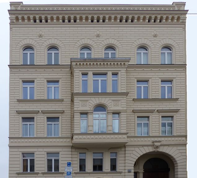 Die nicht für das Sportgelände benötigten Grundstücke an der Tauernallee wurden mit einer großzügigen Wohnanlage beidseits der Blockränder bebaut. Die Wohnungen in dreigeschossigen Wohnzeilen sind nach Süden ausgerichtet, deshalb unterscheiden sich die Fassaden an den gegenüberliegenden Straßenseiten. Geschwungenes Mauerwerk führt in die nördlichen Hauseingänge. Auf der Südseite sind die Treppenhausachsen hervorgehoben und mit großen rechteckigen Fenstern betont. Die großen, kugelförmig beschnittenen Sträucher geben ein ungewöhnliches Bild einer Wohnsiedlung beidseits der Straße.