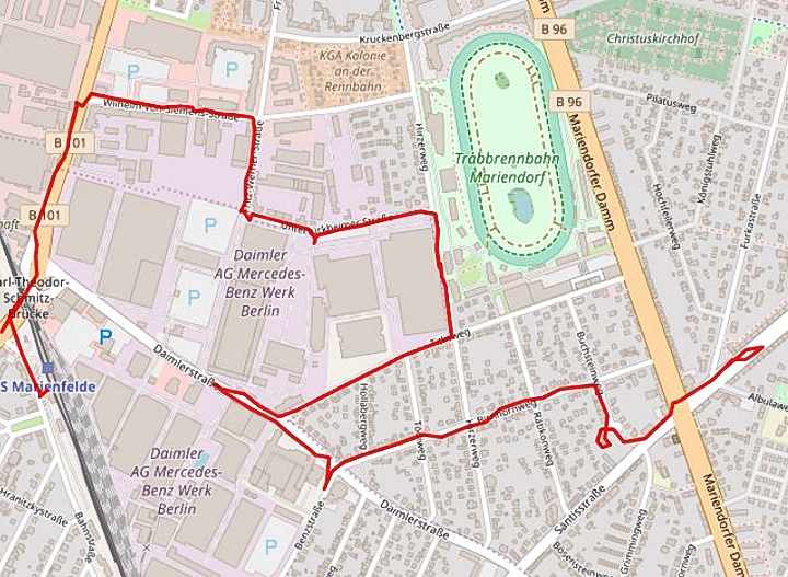 Die Daimlerstraße in Mariendorf bekam ihren Namen 1925. Zu diesem Zeitpunkt produzierte Daimler-Benz bereits mehr als 20 Jahre lang an diesem Standort. Nach weiteren 20 Jahren war es damit vorbei, im Zweiten Weltkrieg wurde die Fabrik komplett zerstört. Dann nochmal 40 Jahre später war Daimler wieder da. Mercedes übernahm die Produktionsräume einer benachbarten Werkzeugfabrik, die pleite gegangen war, und stellt bis heute dort Motoren her. Manchmal muss man eben warten können.