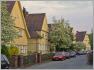 Und dann entdecken wir in der Monopolstraße (quer zur Ullsteinstraße) eine ausgedehnte Reihenhaussiedlung mit eigenwilligen Formen, die sehr stark variiert werden und jedem Haus seinen eigenen Charakter geben, ohne der Gesamtwirkung zu schaden. Und die Reihendoppelhäuser sind zum nächsten Baukörper jeweils durch niedrige Bauriegel miteinander verbunden, deren nutzerischer Sinn verborgen bleibt, geht dieser eine Raum pro Haus doch jeweils zu der Seite vom Eingangsbereich ab, die der Wohnung abgewandt ist. Die Gärten sind verschwenderisch groß, die Einheitlichkeit der Gestaltung (Farben, Baumaterial) ist bis heute fast vollständig erhalten geblieben. Trotz meiner Rechercheversuche bleiben mir nähere Umstände dieser Siedlung zunächst verborgen.