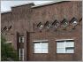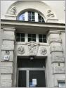 Was für eine gelungene Ecklösung! Das markante Bürogebäude am Zusammentreffen von Ringbahnstraße und Tempelhofer Damm könnte Geschäftshausarchitektur der 1920er Jahre sein, wurde aber tatsächlich 1950 entworfen. Die Fenster an den beiden Seitenstraßen laufen mit horizontalen Bändern auf den zylindrischen Baukörper an der Ecke zu, der eine vertikale Gliederung aufweist.