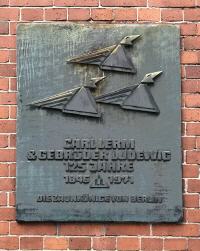 Produziert wurde in einem fantasievollen Industriegebäude an der Ringbahnstraße. Die Attika unterhalb des Dachs ist mit Ornamenten aus Backstein geschmückt. In die Ornamente sind rautenförmige kleine Dachfenster in Zickzackform eingeschnitten. Eine Fabrik für Branntwein ließ das Industriegebäude 1905 errichten. In den Zwanziger Jahren übernahm - wie passend - die Reichsmonopolverwaltung für Branntwein das Gebäude und baute noch an.