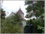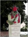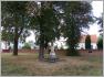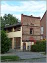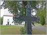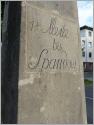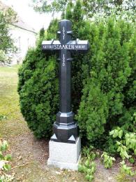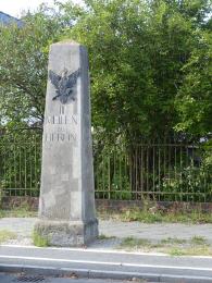Nach diesem Ausflug in die "Nachnutzungs"-Geschichte eines prominenten Bauwerks wende ich mich unserem Spaziergang im Dorf Staaken zu. Dass ein Denkmal buchstäblich umgedreht wurde, um ihm einen neuen Sinn zu geben, kann man vor der Dorfkirche in Staaken sehen. Die Staakener hatten 1901 dem Königreich Preußen zum 200. Jubiläum einen Gedenkstein ("Königstein") gewidmet. Der zwei Meter hohe Obelisk aus Sandstein war mit einer goldenen Krone verziert und mit einer Inschrift versehen. Nach Ende des Zweiten Weltkriegs wurde der Stein von den Sowjets halbiert, auf den Kopf gestellt und mit einem Sowjetstern mit Kranz und Schleife gekrönt. Inschriften in deutsch und kyrillisch verweisen auf die Befreiung Staakens durch die siegreiche Rote Armee. Wann diese "Umwidmung" geschah, ist nicht überliefert, wahrscheinlich war es 1951 oder später, da erst ab diesem Zeitpunkt das Dorf Staaken zur Sowjetischen Besatzungszone gehörte. Nach der Wende ist der Stein beschädigt worden, der Sowjetstern wurde geköpft. Die CDU Spandau verlangte daraufhin, den preußischen Kaiserstein wiederherzustellen, aber so einfach bekommen wir das Kaiserreich nicht zurück - der Sowjetstern ist wieder drauf auf dem Stein.