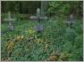 Angelegt wurde der Staakener Friedhof als Allequartierfriedhof. Damit bezeichnet man eine rasterförmige Anlage, innerhalb derer Alleen und Wege unterschiedliche Breite haben. An den Alleen und Hauptwegen liegen die 'besseren Leute', innerhalb der Rasterfelder die einfacheren Bürger, eine Klassengesellschaft ganz wie im Leben. Monumentale Erbbegräbnisse wird man auf diesem Friedhof vermissen, allerdings glauben wir das wahrscheinlich längste Grab Berlins hier entdeckt zu haben. Die Familie des Ackerbürgers Carl Damm ruht in einem Grabfeld, dessen Einfassung 20 Meter lang ist. Auf dieser Breite könnte man 16 Einzelgräber unterbringen, für ein Grabfeld (kein Mausoleum, kein Erbbegräbnis) eine ungewöhnliche Ausdehnung. Weiterhin fällt auf, dass es auf diesem Friedhof aus der Zeit nach der Wende eine Anzahl russischer Gräber gibt. Sie haben eine besondere Ästhetik, weil sie meist ein Bild des Toten in den Grabstein integrieren. Das haben wir bereits auf dem Russischen Friedhof in Tegel gesehen.