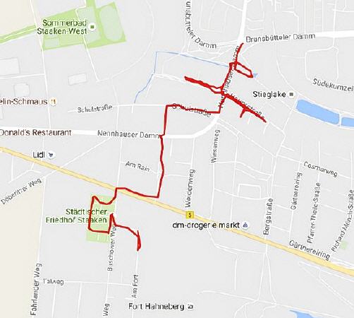 Bei unserem Abstecher zum Grünzug waren wir unter uns, wir sind wir nicht dem "Freyen Clan der Bruderschaft vom Bullengraben" begegnet. Diese Söldner, Mägde, Bauern, Ritter, Bogenschützen sind auch ungefährlich, denn sie wollen Mittelalter-Geschichte mit einem Augenzwinkern vermitteln. Auf Geschichte aus unserer Generation sind wir aber gestoßen, denn mehrere Markierungen verweisen auf den Mauerverlauf und den Berliner Mauerweg. Die Grenzlinie, die 1951 gezogen worden war, um West-Staaken der sowjetischen Hoheit zu unterstellen, kreuzt vom Nennhauser Damm kommend den Bullengraben und verläuft durch die Bergstraße direkt zum Grenzkontrollpunkt an der Heerstraße. Heute liegt die Berliner Stadtgrenze auch an der Heerstraße ein ganzes Stück weiter westlich, weil West-Staaken wieder zu Berlin gehört.