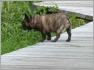 Und beigefarbene Tiere stehen auf den Wiesen herum, die wie Schafe in Rindviehgröße aussehen. Sie sind so sehr mit Grasen beschäftigt, dass man ihren tief im Grün steckenden Kopf kaum sehen kann. Es sind Galloways der Farbe Dun mit flauschigem Fell, die einen als Weideland ausgewiesenen Teil dieses Gebietes nutzen.