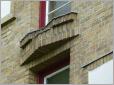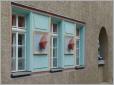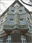 Ich hoffe, dass meine Architektur-Begeisterung für den geneigten Leser - die geneigte Leserin - noch erträglich ist, denn hier kommt noch ein ungewöhnlicher Bau aus den 1920er Jahren, den wir an der Jägerstraße Ecke Weißenburger Straße gesehen haben. Der Architekt B.Bohne - über den sonst die Bohne nichts bekannt ist - hat sich ein Eckhaus spendiert, das nicht mit expressionistischen Details geizt.