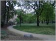 Aus dem Mittelalter wieder in die Jetztzeit. Die Dianastatue am Eingang des Parks haben wir übersehen, sie wird uns bei einer späteren Wanderung anlächeln. Das "Denkmal für die deutsche Brieftaube", das früher hier im Park stand, ist bei dessen Umgestaltung zur Falkenseer Chaussee umgezogen. Die Bronzebrieftauben waren ohnehin kriegsbedingt eingeschmolzen worden, nur noch die verwitterte Inschrift "Unseren Brieftauben" soll erhalten sein.