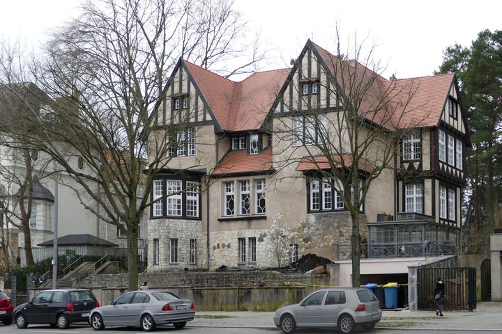 Wir sind heute in der Villenkolonie Zehlendorf-West im Umkreis des Mexikoplatzes unterwegs. Herrschaftliche Landhausbauten flankieren die Lindenthaler Allee, in der unsere Stadterkundung beginnt. Dem Bautyp des englischen Landhauses entspricht beispielsweise das 1906 an der Lindenthaler Allee 5 erbaute Haus mit einem Doppelgiebel, einem weiteren Giebel an der Seite und einem vorgewölbten Erker. Das Haus mit einem Sockelgeschoss aus Naturstein liegt auf einer leichten Anhöhe des Geländes und reicht rückwärtig an die Grundstücke der Dubrowstraße heran.