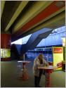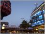 Wir sind in der Schloßstraße kurz vor Beginn der Dämmerung unterwegs (2). Als die Lichter angeschaltet werden, kommt die Lichtskulptur am Titania-Palast voll zur Wirkung. Und Licht lockt uns in die Konsumtempel Schloss-Straßen-Center, Forum Steglitz, Das Schloss. Im Bau ist eine weitere Einkaufsgalerie, die Karstadt und das ehemalige Wertheim verbinden soll, die "Schloßstraße wird zur Klotzstraße", befürchtet die BZ, denn hier entsteht die größte Einkaufscenter-Dichte der Stadt. Und sie soll noch mehr zur Flaniermeile mit breiterem Bürgersteig, Außengastronomie, schmaleren Autospuren und einem Fahrradweg werden. Wir ziehen wegen der Oktober-Kälte die Innengastronomie vor und essen thailändisch in dem schon unglaublich lange (gefühlt schon seit immer) in der Ahornstraße existierenden "Sida".