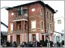 Zurück zum Bahnhof Zehlendorf. An den Einmündungen Berlepschstraße/Machnower Straße/Teltower Damm stehen interessante Baudenkmale, an denen man nicht achtlos vorbeigehen sollte. Das Eckgebäude am Teltower Damm war einmal eine Postwechselstation, auf dem Hof des Grundstücks wurden in der Postkutschenzeit die Pferde versorgt. An dem Miethaus Berlepsch- Ecke Machnower Straße kann man studieren, wie eine phantasievolle Ecklösung aussehen kann (leider gibt es zu viele Bauten in Berlin - alt wie neu -, bei denen den Architekten zum Thema Ecke gar nichts eingefallen ist). Ein Rundturm mit einem Drei-Viertel-Kreis als Grundriss betont die eigentlich spitze Gebäudeecke, der Dachhelm ist nicht mehr vorhanden.