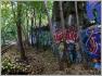Nördlich der Gartenstadt verläuft eine Bahntrasse. Die Gleise der ehemaligen Stammbahn sind größtenteils erhalten, von der Berlepschstraße aus kann man den parkartigen Bereich mit dem Gleisbett betreten. Erst kurz vor dem Bahnhof Zehlendorf hören die Gleise auf, weil sie 1984 dem Ausbau der Güterstrecke nach Wannsee im Wege waren. Auch die Stammbahn und die "Bankierszüge" haben sich gekreuzt, bis sie 1912 durch ein Brückenbauwerk voneinander getrennt wurden. Die Widerlager dieser Brücke sind noch vorhanden, hier haben sich Graffitti-Gestalter ausgetobt. Die Bankierszüge fuhren vom Bahnhof Zehlendorf nach Wannsee ohne Zwischenstopp, so konnten die wohlhabenden Bewohner der Kolonie Wannsee ("Bankiers") ihr Zuhause schnell erreichen (--> 4). Nachdem wir im August in Düppel und Zehlendorf-Süd an der alten Stammbahn unterwegs waren (--> 1), sind wir heute der Trasse weiter Richtung Zehlendorf(-Mitte) gefolgt, auch sie ist von der Natur weitgehend zurückerobert worden.
