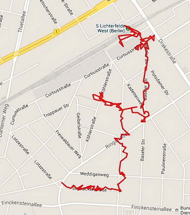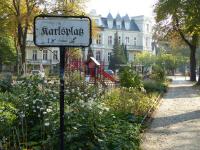 Bei "Frau Lüske" am Karlplatz gönnen wir uns einen Kaffee, bevor wir das Flanieren beenden. Amtlich heißt er Karlplatz ohne 's', das Straßenschild zeigt Karlsplatz mit 's': Das Schild steht auf der dreieckigen Aussparung von Baseler-, Ringstraße und Kadettenweg zugunsten eines Spielplatzes. Der Bruder von Kaiser Wilhelm I., - Prinz Karl von Preußen - war der Namensgeber, aber das weiß nicht einmal der sonst sehr kompetente Straßenführer Kaupert, der dann auch noch auf der Straßenkarte den gleichnamigen Platz in Mitte nahe der Charité anzeigt.