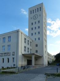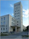 Wer die Fabrikbauten des Architekten Hans Hertlein in Siemensstadt kennt, wird bei dem quadratischen Uhrenturm beim Telefunken-Bau an der Goerzallee sofort eine Verbindung herstellen, und tatsächlich hat Hertlein den Entwurf zu dem Industriekomplex geliefert. Von 1937 bis 1940 wird die Entwurfs- und Bauphase datiert, also genau in den 1939 beginnenden Zweiten Weltkrieg hinein. Zu der streng sachlichen Architektur mit mehreren quadratischen Innenhöfen will das der Antike nachempfundene figürliche Relief nicht recht passen, über seinen Schöpfer ist nichts bekannt. Eine Anwohnerin, die im Gespräch mit uns das Kunstwerk "den Amerikanern" zuschreiben wollte, liegt aber angesichts der allegorischen Darstellung mit den Blitzen sicherlich falsch. Am Fuß des Turms sollten Kolonnaden entstehen, die aber nicht verwirklicht wurden.