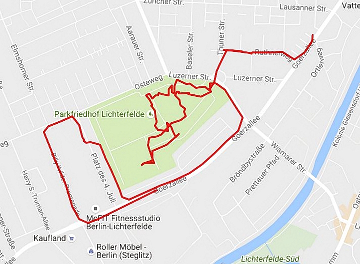 Wie meist bei historischen Friedhöfen ist das Who is Who der dort Bestatteten ein Wegweiser zur Kultur- und Sittengeschichte früherer Zeiten. Kunstvoll gestaltete Grabmale sind heutzutage unmodern und bei Gräbern wird zugunsten leichterer oder eingesparter Grabpflege die Wirkung auf die Nachwelt vernachlässigt. Der Lichterfelder Parkfriedhof lohnt einen ausgiebigen Rundgang, aber leider ist er für gezielte Besuche kaum zu entschlüsseln, weil nur für ganz wenige Gräber die genaue Lage aufzufinden ist. Den Verleger Walter de Gruyter und den Publizisten Sebastian Haffner hätten wir gern besucht, und auch bei Drafi Deutscher wären wir vorbeigegangen, schließlich kann er sich jetzt nicht mehr nackig machen und Menschen erschrecken.