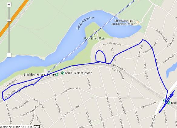 Von Schlachtensee-Ost ist es nur ein kurzer Fußweg bis zum Mexikoplatz (3), wo wir italienisch essen, bevor wir in die S-Bahn steigen.