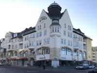 An der nächsten Straßenkreuzung sind es zwei historisierende Eckgebäude, die den Eckpunkt mit Haube und Kuppel betonen. Das eine folgt den beiden Straßen mit gefälliger Rundung, das andere setzt mit einem kantigen Erker Akzente. Zur Schützenstraße setzt sich dieser Bau fort und umschließt dort einen offenen Innenhof mit über Eck gestellten Erkern.