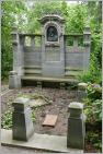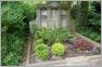 Zwei Putten flankieren den Grabstein von Carl Schwartz, eine steinerne Blumenschale krönt den Stein. Hier ruht der Besitzer der Schwartzschen Villa, die fast abgerissen worden wäre. Eine hartnäckige Bürgerinitiative konnte das verhindern.