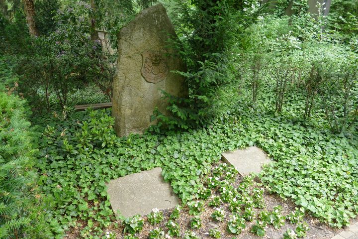 Dagegen ist das Grab von Ehrenfried Günther Freiherr von Hünefeld noch vorhanden, es ist oberhalb der Familiengräber zu finden. Auch er war ein Pionier der Luftfahrt - der "tolle Baron". Von Kind an begeistert für die Fliegerei, gesundheitlich gehandicapt, aber von nicht endender Energie. Halbblind geboren, als Jugendlicher häufig schwer krank, unter anderem mit einer Nierenentzündung, bei Beginn des Ersten Weltkriegs wegen einer Rippenfellentzündung untauglich, schloss er sich einem Freiwilligen-Kraftfahrerkorps an, machte in Eilkursen den Führerschein und zog als Kradmelder an die Westfront.