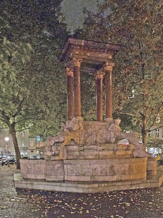 Der St.Georg-Brunnen ohne St.Georg steht seitdem an der Wilmersdorfer Straße am Hindemithplatz. So etwas kennen wir schon in Berlin: Bismarckdenkmal ohne Bismarck oder Lenindenkmal ohne Lenin.
